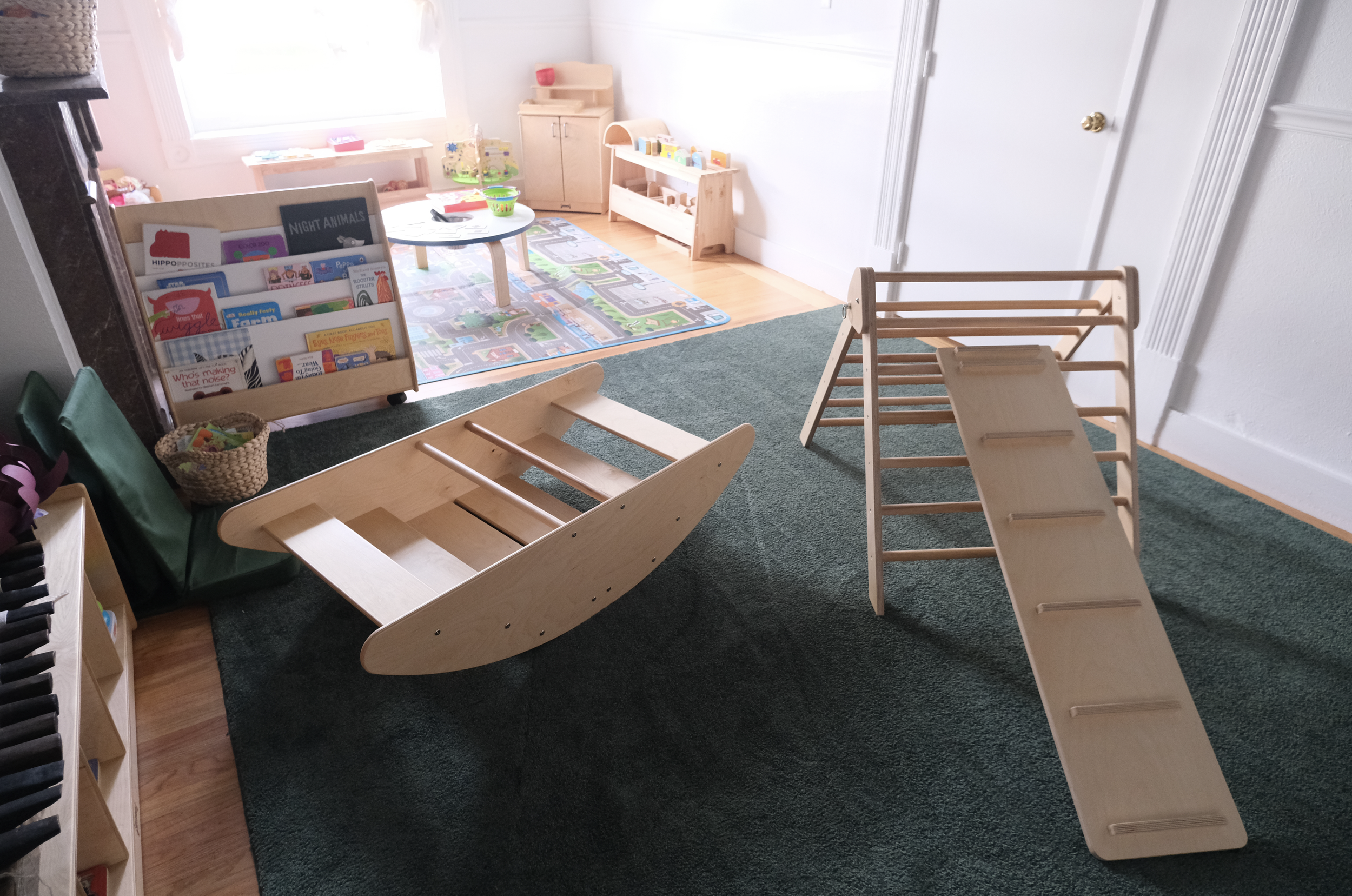 We are Music Makers, music and movement classes, is also led by Teacher Kirsten. Classes are held on Tuesdays and Thursdays for walkers and crawlers. Music is a universal language. It is made up of sounds, rhythms, and patterns. As practicing singers, dancers, and music makers, simple pattern recognition strengthens connections in the brain which supports reading and math skills, self regulation and so much more. From practicing classic nursery rhymes to grooving to middle eastern ensemble music, We Are Music Makers is designed to support the emotional, physical and cognitive health of all who participate.